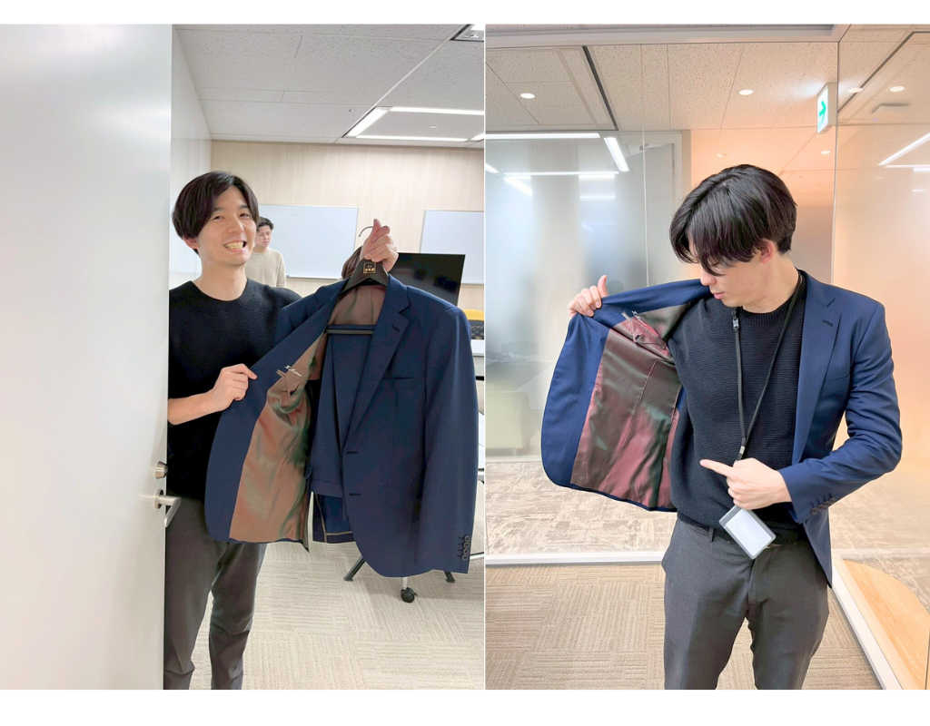 仕上がったスーツを手にした瞬間の社員の表情って、