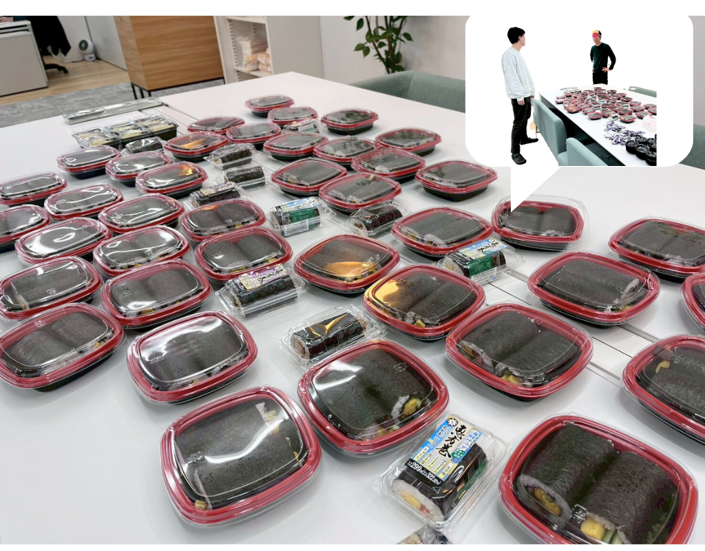 オフィスにはずらっと並んだ恵方巻と、